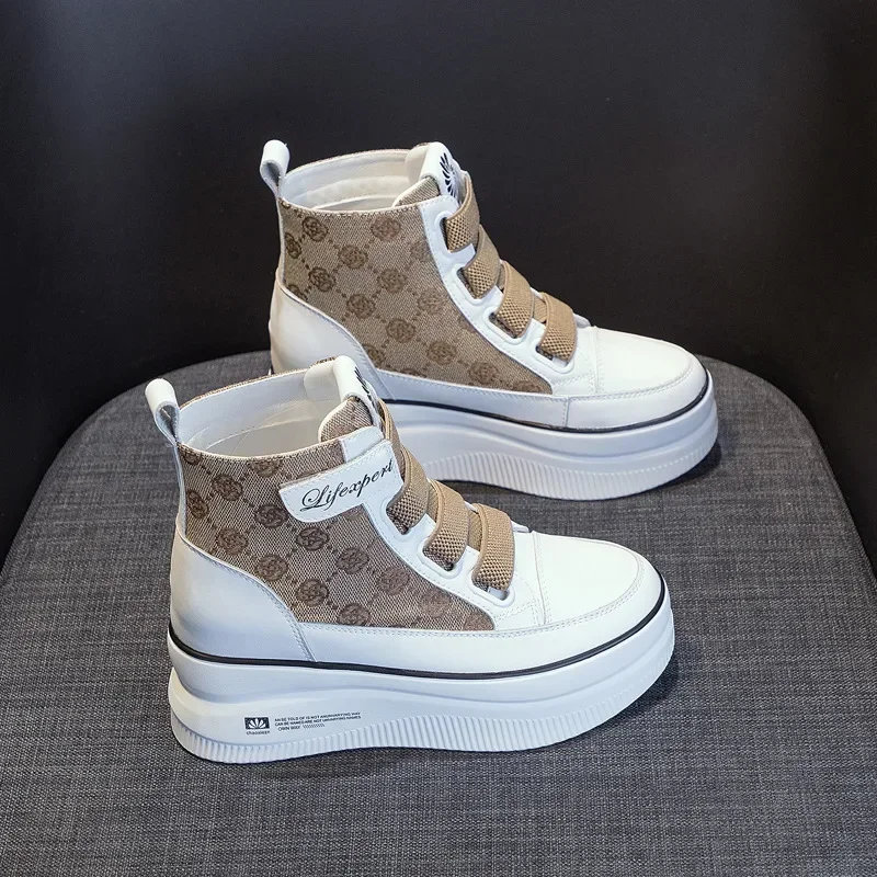 Женские высокие ботинки, осенняя Новая повседневная спортивная Белая обувь, обувь на толстой подошве, женские короткие ботинки в Корейском стиле