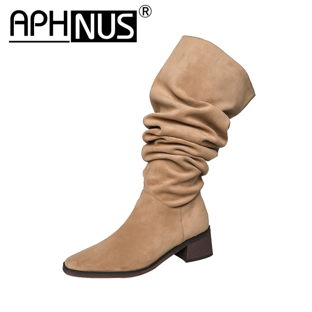 Женские высокие сапоги до середины икры APHNUS, высокие сапоги до бедра, туфли-лодочки на низком каблуке, женская обувь 2023, новые сапоги