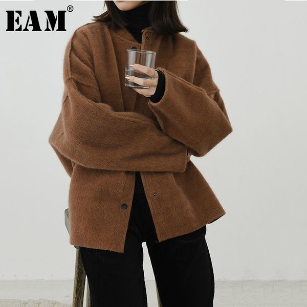 eam] 2019 новая весна зима стенд воротник с длинным рукавом черный свободные большой размер толстые шерстяные пальто женщины парки мода при, Black