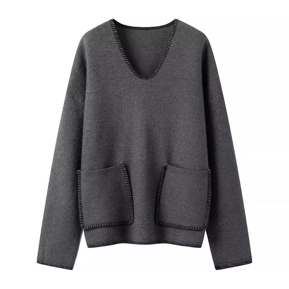 Женские вязаные пуловеры с длинными рукавами и карманами в ленивом стиле, осень-зима, большие лоскутные свитера S темно серый