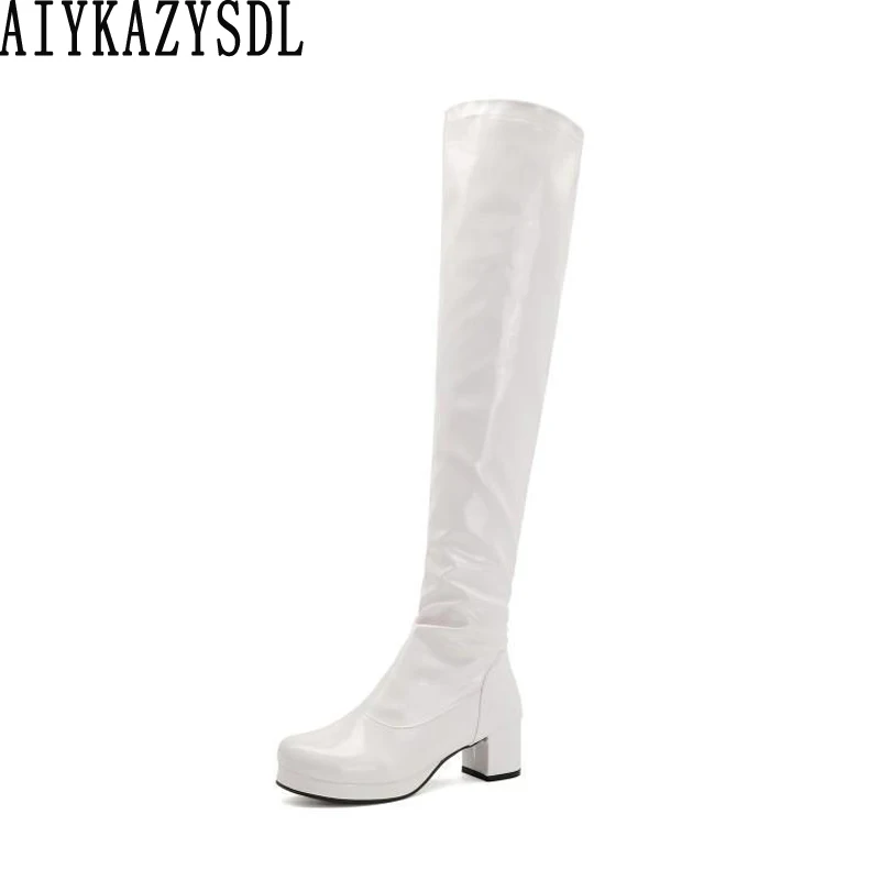Женские глянцевые Сапоги выше колена AIYKAZYSDL из лакированной кожи, водонепроницаемые ботфорты карамельных цветов, сапоги до бедра, обувь для косплея