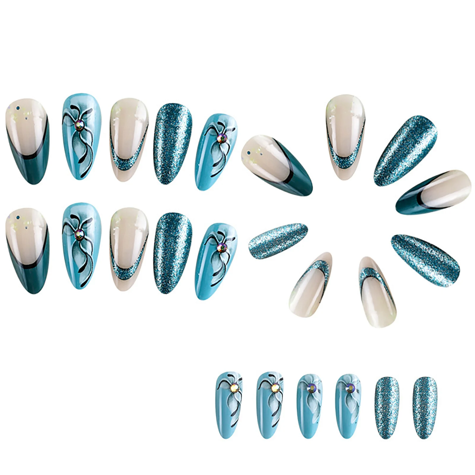 Женские глянцевые накладные ногти с цветочным узором и острым краем, съемные искусственные ногти для ручного украшения ногтей