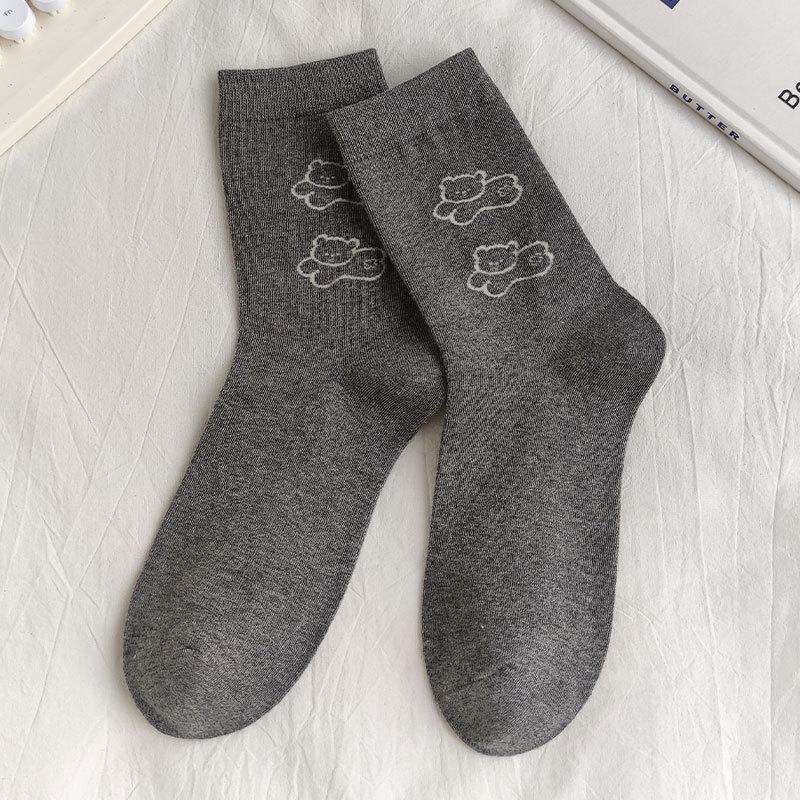 Женские гольфы до середины икры, Весенне-осенние нескользящие хлопковые носки, Универсальные длинные носки до икры в школьном стиле с принтом в горошек и мишкой 1 pair