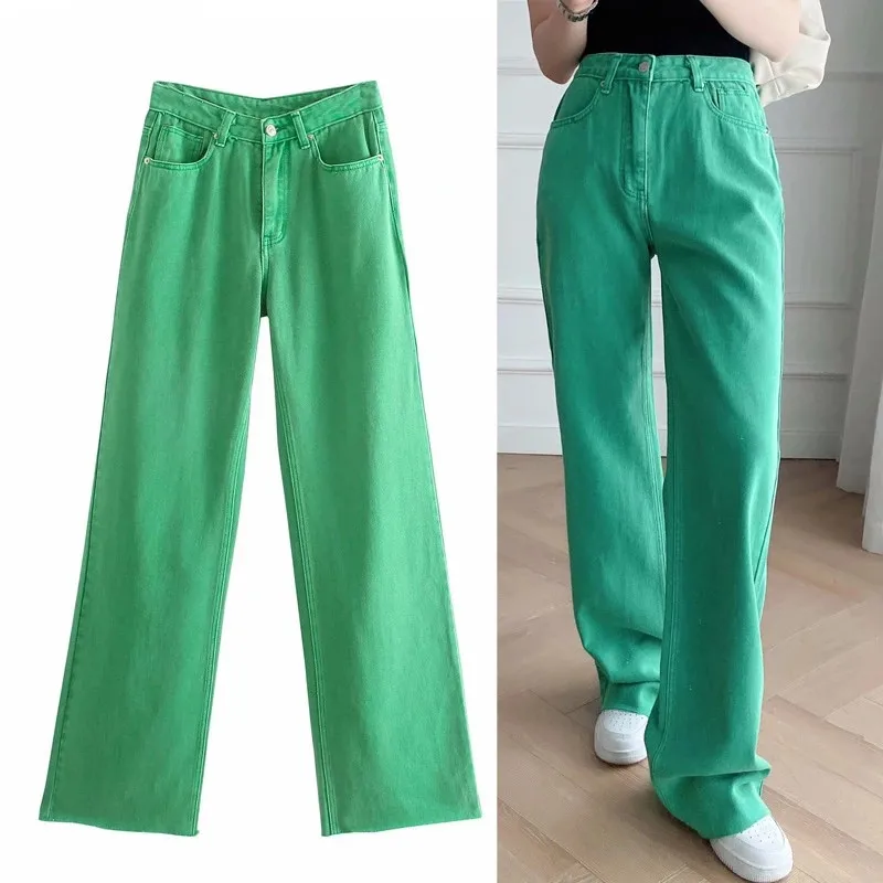 Женские джинсовые брюки, зеленые и желтые широкие мешковатые джинсы, женские брюки с высокой талией, костюм, прямые джинсы-бойфренды, улична...