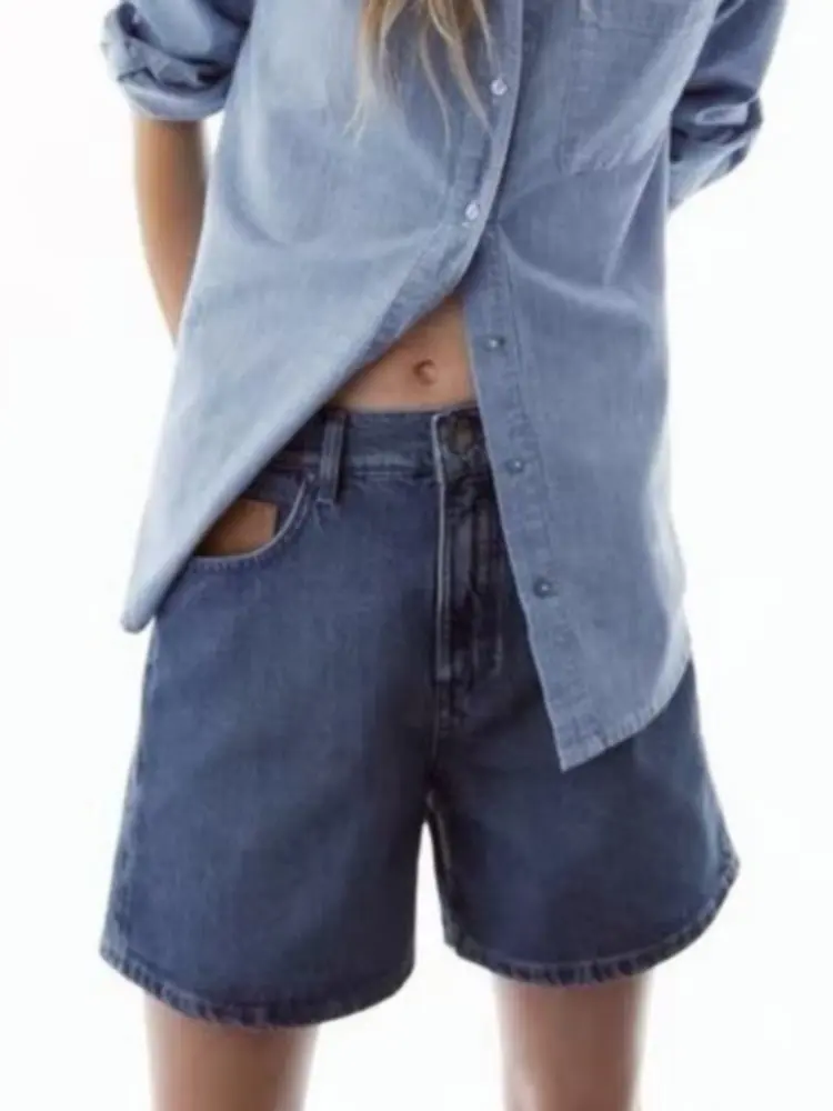 Женские джинсовые брюки с высокой талией, повседневные брюки из джинсовой ткани с карманами и широкими штанинами, лето 2022