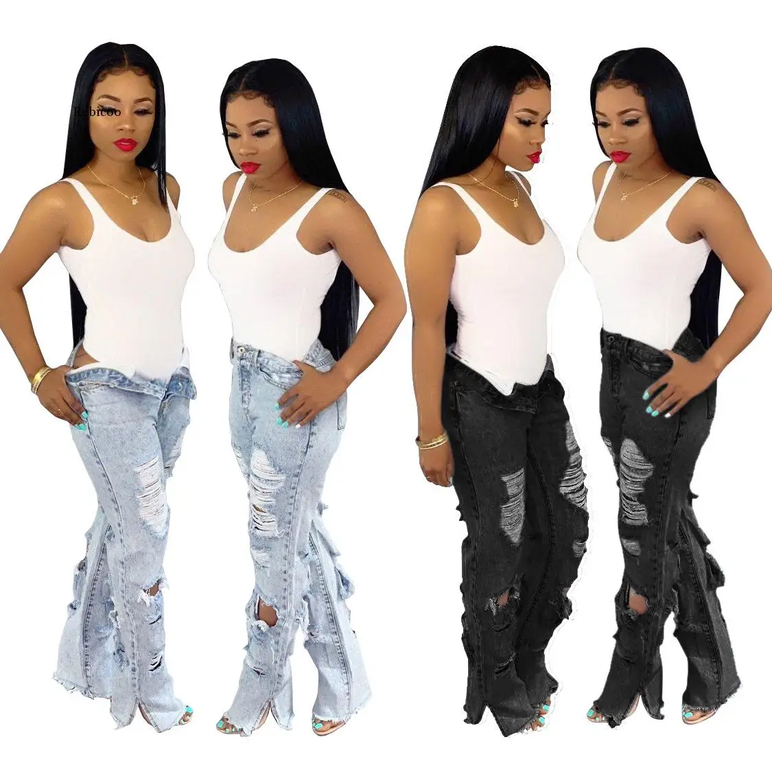 Женские джинсовые расклешенные брюки 2022, рваные джинсы в стиле ретро, брюки с широкими штанинами, женские расклешенные брюки, женские винтажные джинсы