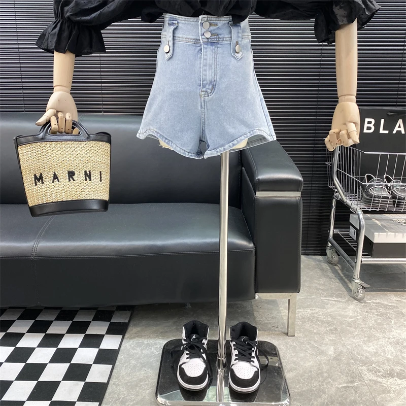 Женские джинсовые шорты с двойной пряжкой, широкие универсальные шорты с высокой талией, 2022