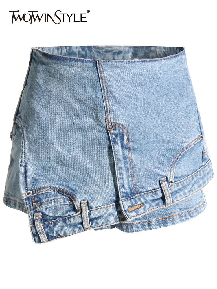 Женские джинсовые шорты TWOTWINSTYLE, однотонные юбки с высокой талией и асимметричным подолом, уличная одежда 2022