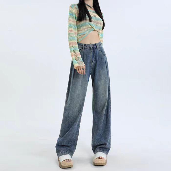 Женские джинсы в стиле ретро с широкими штанинами: Весна/Осень 2025 Брюки с высокой талией, плиссированные, стройнящие, драпирующиеся, прямого кроя до пола. M