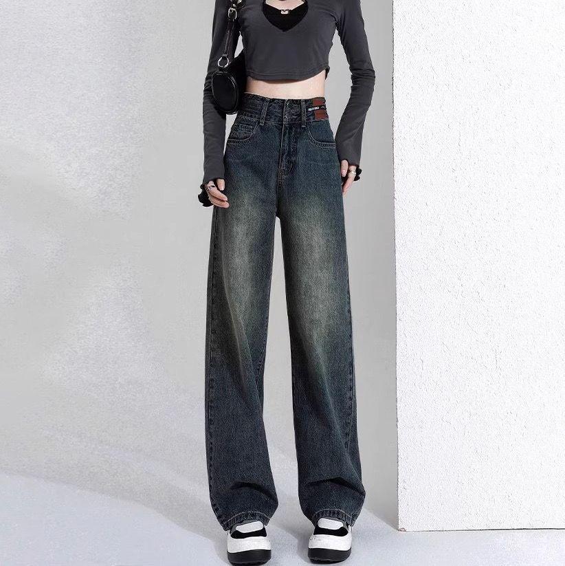 Женские джинсы в стиле ретро с широкими штанинами: 2025 Новое зимнее на флисовой подкладке, маленького размера, прямое до пола для весны и осени. XL