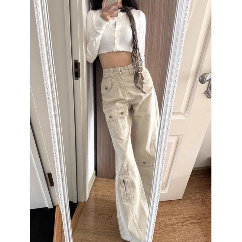 Женские джинсы карго с микроклешем, американская горячая штучка, много карманов, стройнящие - весенние брюки прямого кроя M