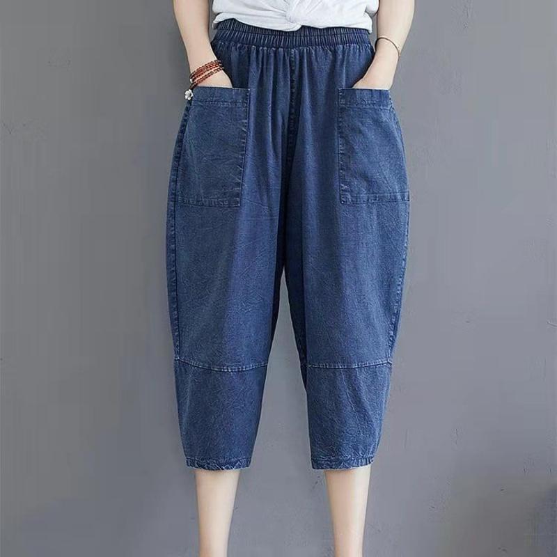Женские джинсы, летние свободные брюки большого размера с большими карманами, узкие брюки с эластичной резинкой на талии, модные шаровары нового поколения 2XL синий