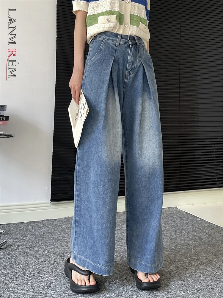 Женские джинсы со складками [LANMREM], прямые свободные широкие брюки с высокой талией, модные джинсовые брюки, Новинка осени 2023, 26D464
