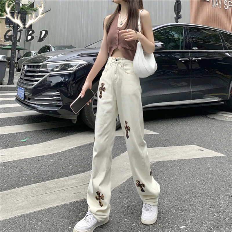 Женские джинсы с высокой талией, белые свободные прямые брюки в уличном стиле, с широкими штанинами, лето 2021