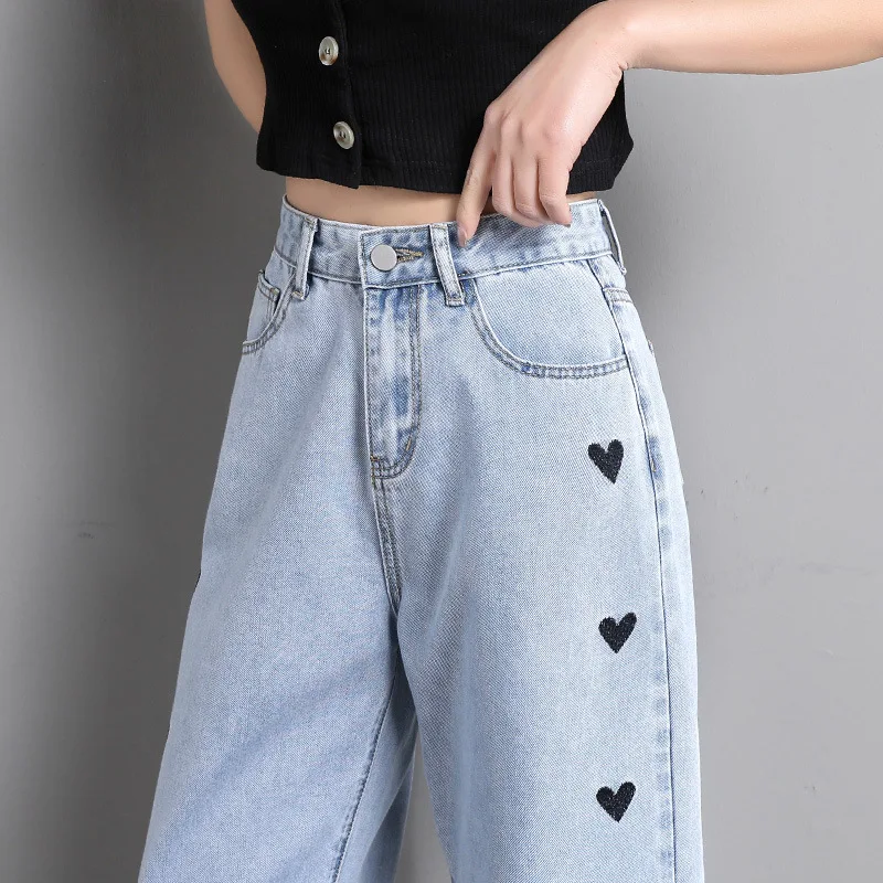 Женские джинсы с высокой талией, синие прямые длинные брюки с широкими штанинами в винтажном стиле, 2021