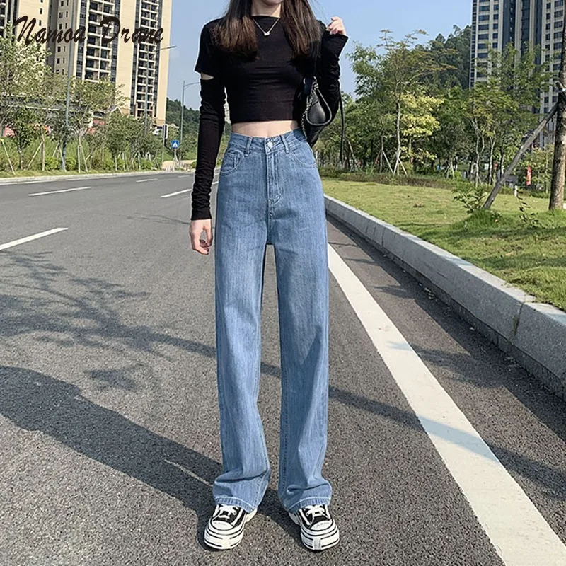 Женские джинсы с завышенной талией Namou Drane, прямые свободные драпированные джинсы с широкими штанинами, весна-лето 2022