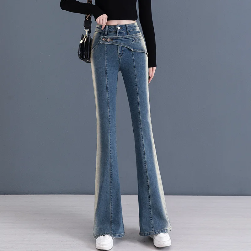 Женские джинсы с заниженной талией, винтажные Брюки-клеш из денима, повседневные модные джинсы в Корейском стиле для мам, Y2k, уличная одежда