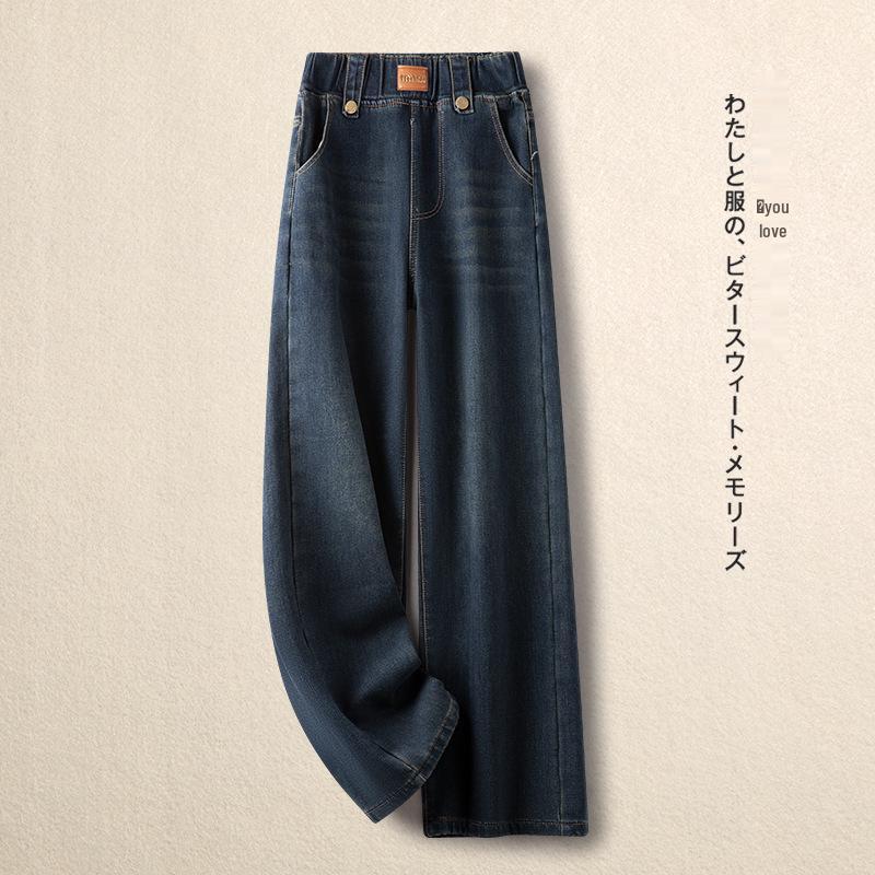Женские джинсы широкого кроя на флисовой подкладке, с эластичной талией - Ретро узкие прямые, Новинка сезона Осень/Весна 2025 26 (Recommended 85-95 Jin)