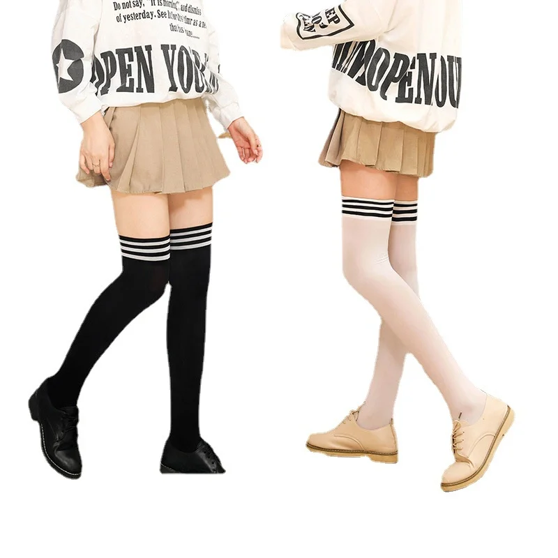 Женские длинные носки выше колена, носки с тремя полосками средней длины, студенческие японские носки для скейтборда и футбола