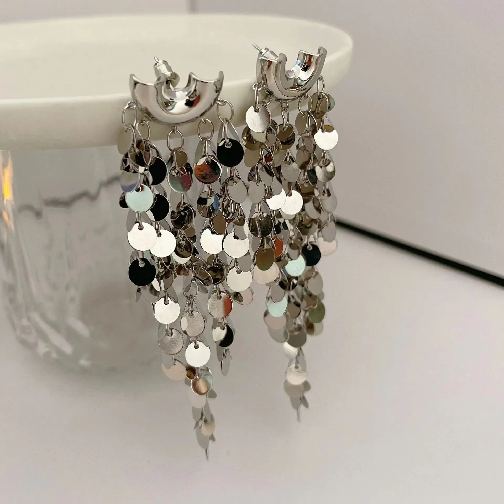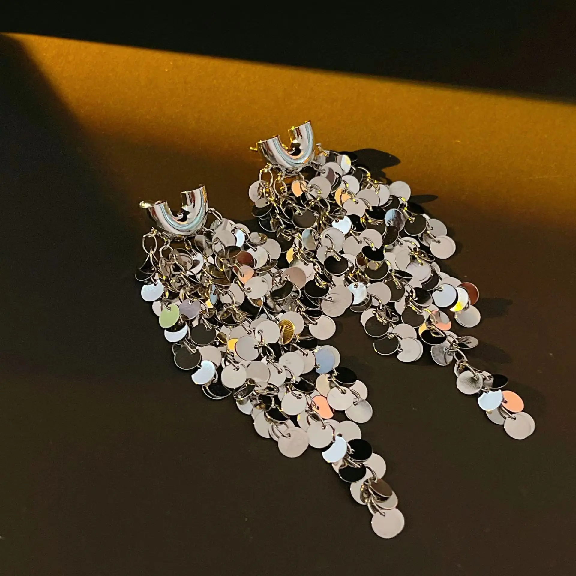 Женские длинные серьги из серебра 925 пробы, с блестками