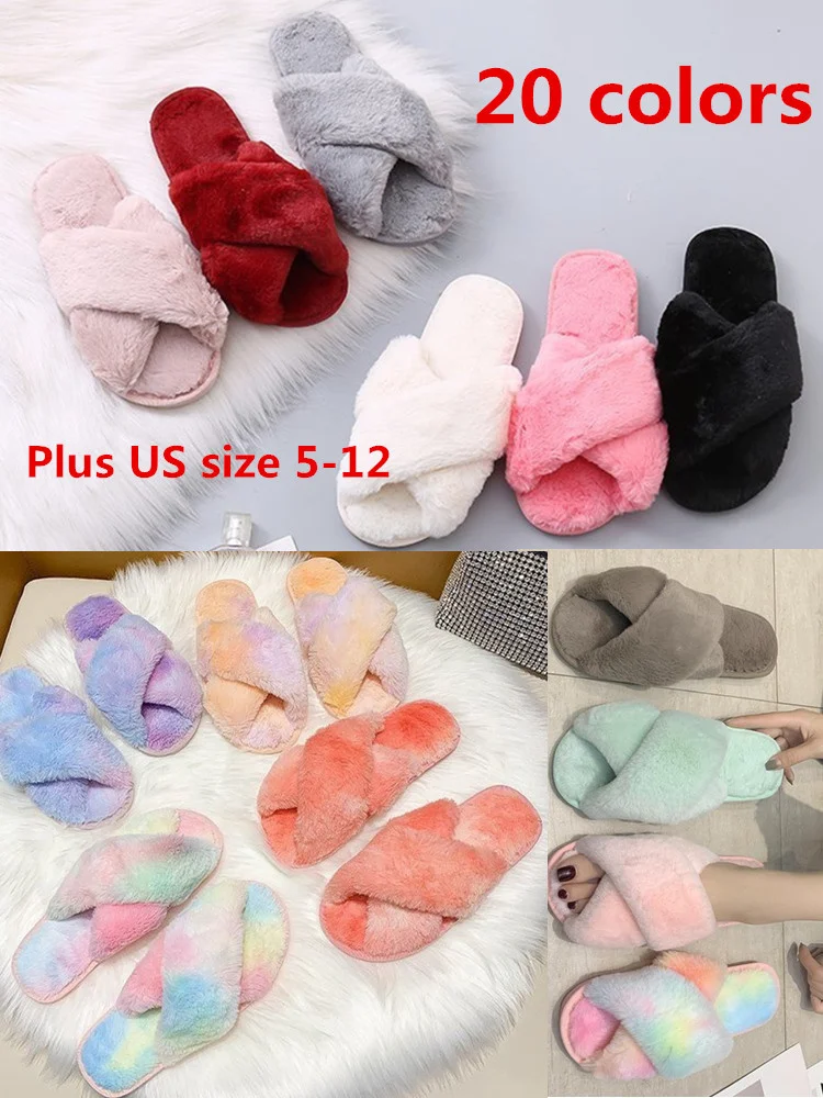 Женские домашние тапочки из искусственного меха, на плоской подошве