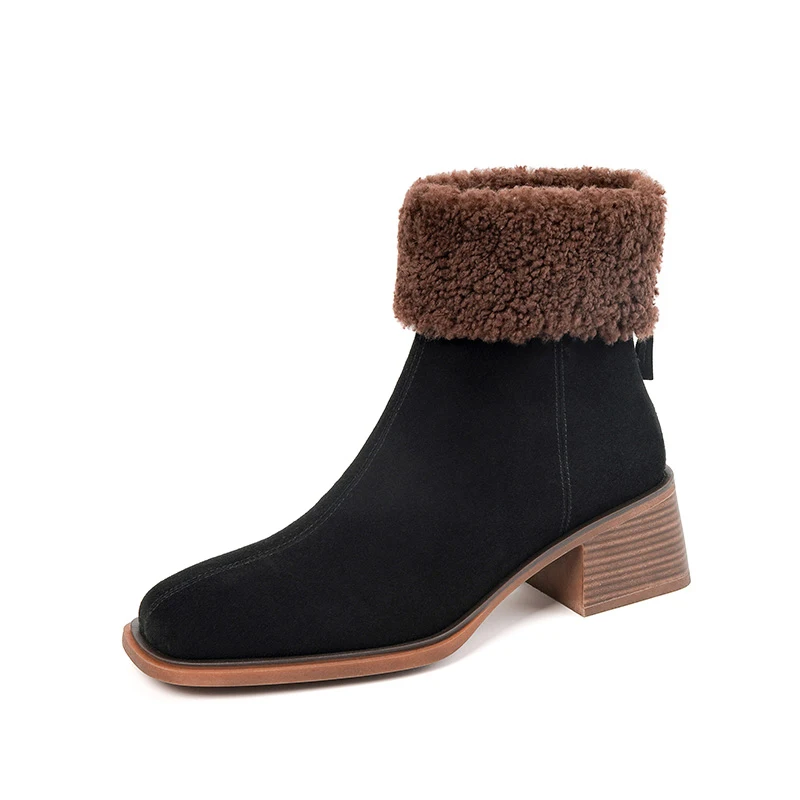 Женские замшевые ботильоны, черные или коричневые ботинки на массивном каблуке, с квадратным носком, на молнии, высотой 2023 см, для зимы, 5,5