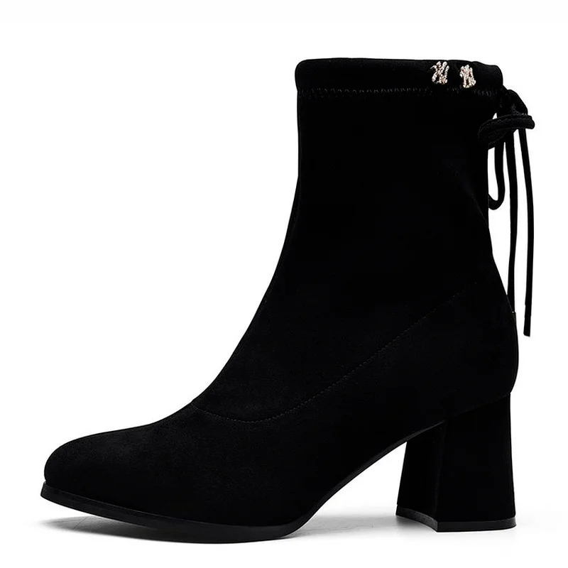 Женские замшевые ботинки с бархатной подкладкой, теплые Нескользящие ботинки на высоком устойчивом каблуке, на шнуровке, на толстом каблук...