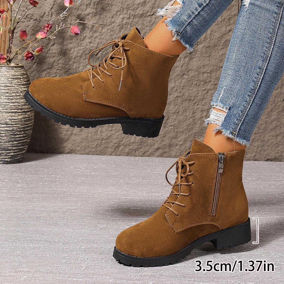 new short plush warm women's boots british wind shallow pointed thick heel work boots suede laceup fashion boots #1j7v, Black