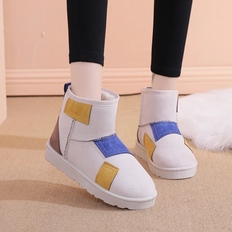 Женские зимние ботинки на плоской подошве, Теплые повседневные ботинки с мехом, в стиле пэчворк, новинка 2021