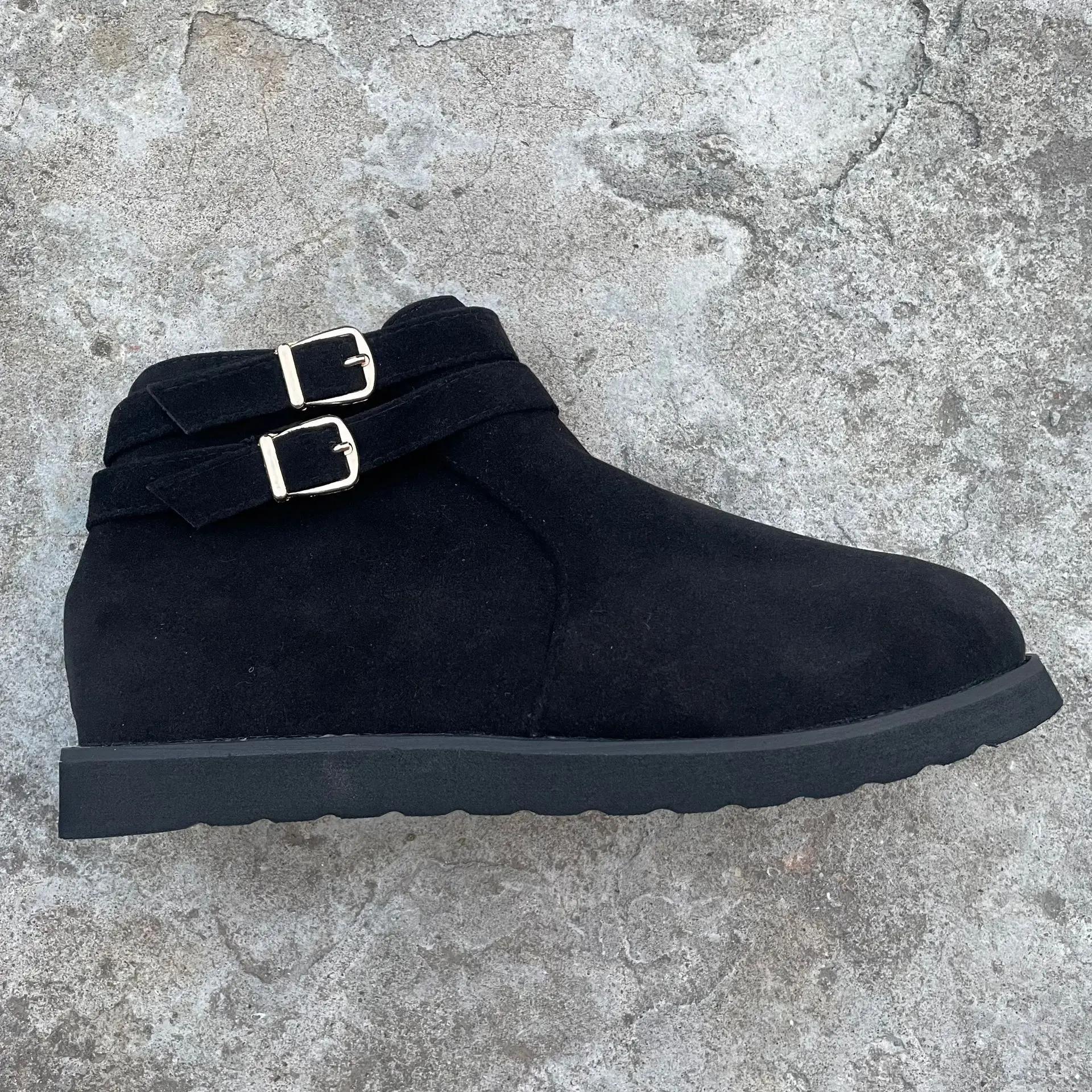 Женские зимние ботинки, новые женские замшевые ботильоны из флокового меха, женские зимние ботинки на плоской подошве, большие размеры, на платформе, женские теплые ботинки Botines Mujer 35 чёрный