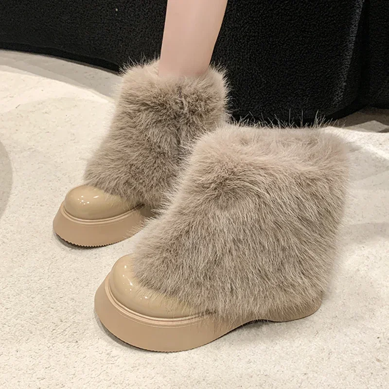 Женские зимние ботинки, пушистая теплая обувь, зимние Дизайнерские ботильоны челси на плоской платформе, женские ботинки на молнии с плюшевой подкладкой, 2024