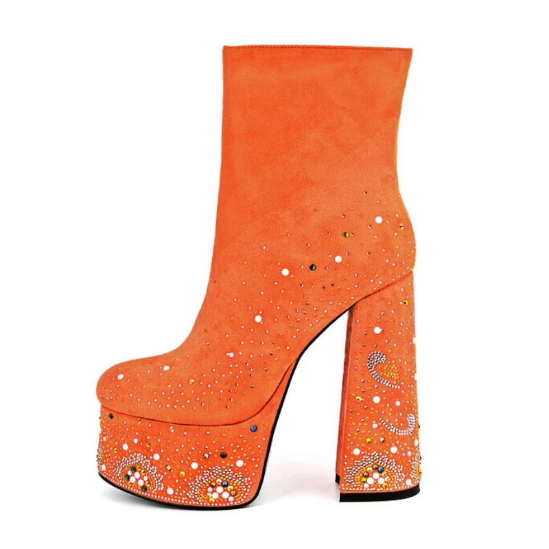 Женские зимние ботинки со стразами, ботильоны на платформе для весны и осени, 2023