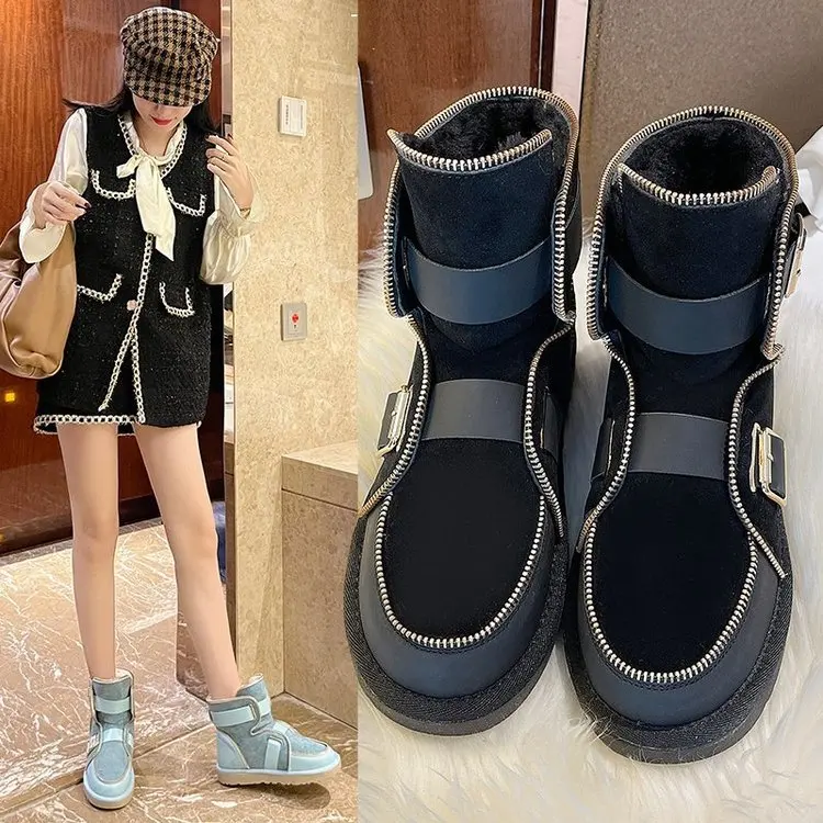 Женские зимние ботинки, толстые ботинки для женщин, новинка 2021, зимняя кашемировая нескользящая обувь на плоской платформе для студентов в ...