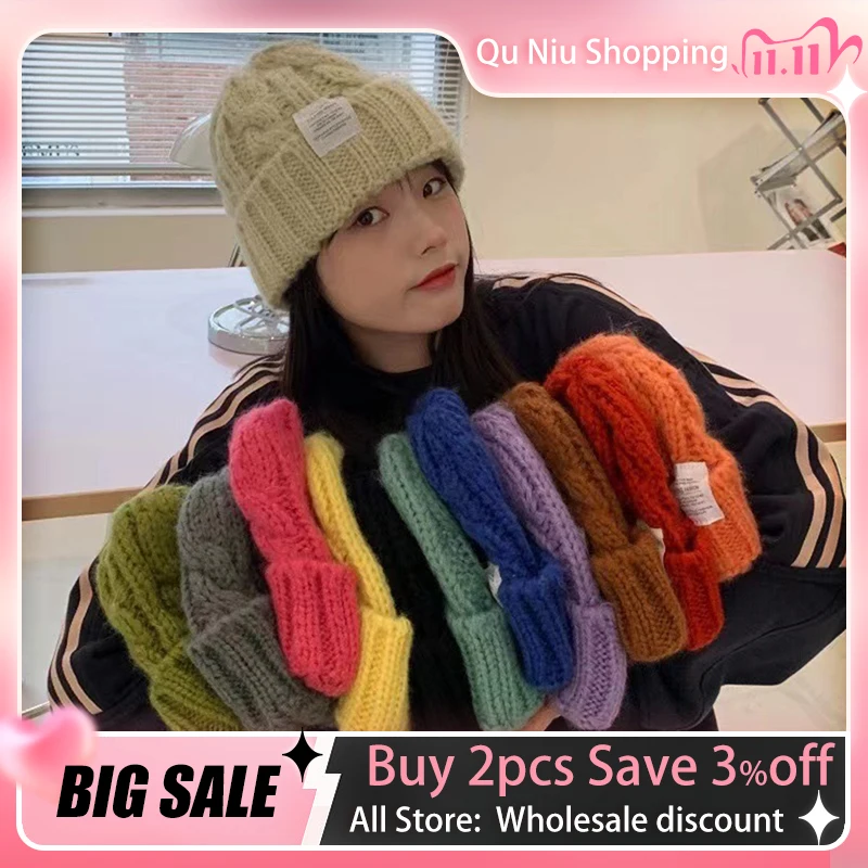 Женские зимние вязаные шапки, однотонные шапки-бини в стиле хип-хоп, шапки без козырька, теплая уличная одежда, теплые вязаные шапки