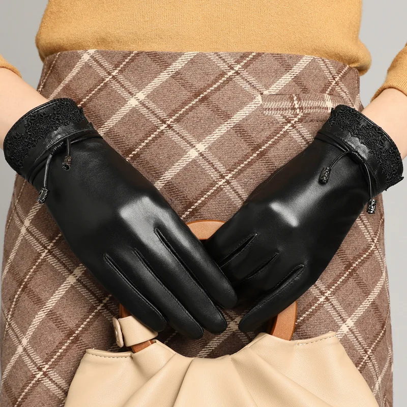 Женские зимние перчатки из натуральной овечьей кожи, с защитой от ветра