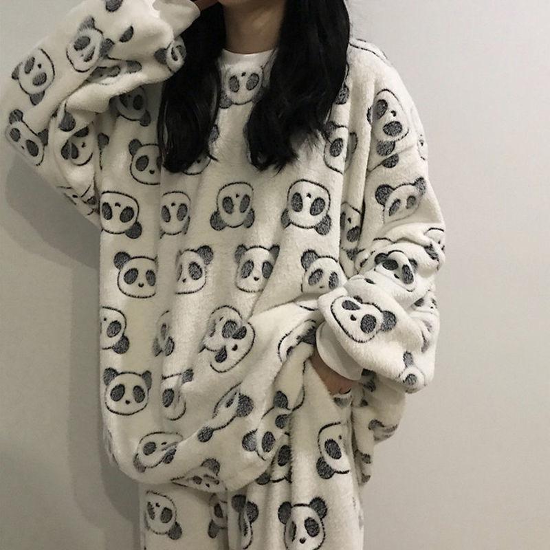 Женские зимние пижамы, плюс бархатные и утолщенные фланелевые пижамы, симпатичные теплые пижамы с длинными рукавами, свободная домашняя одежда из кораллового бархата M