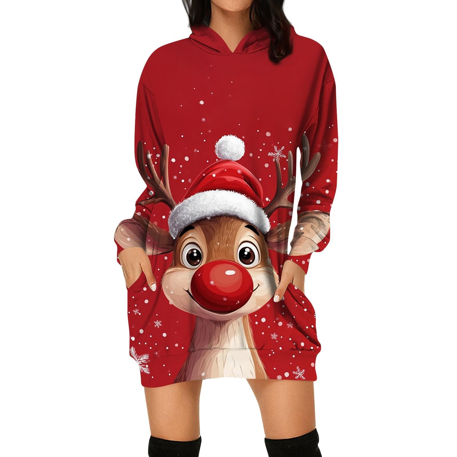 Женские зимние платья Модные женские рождественские принты Письменный принт Карманы с капюшоном Платье-толстовка M красный