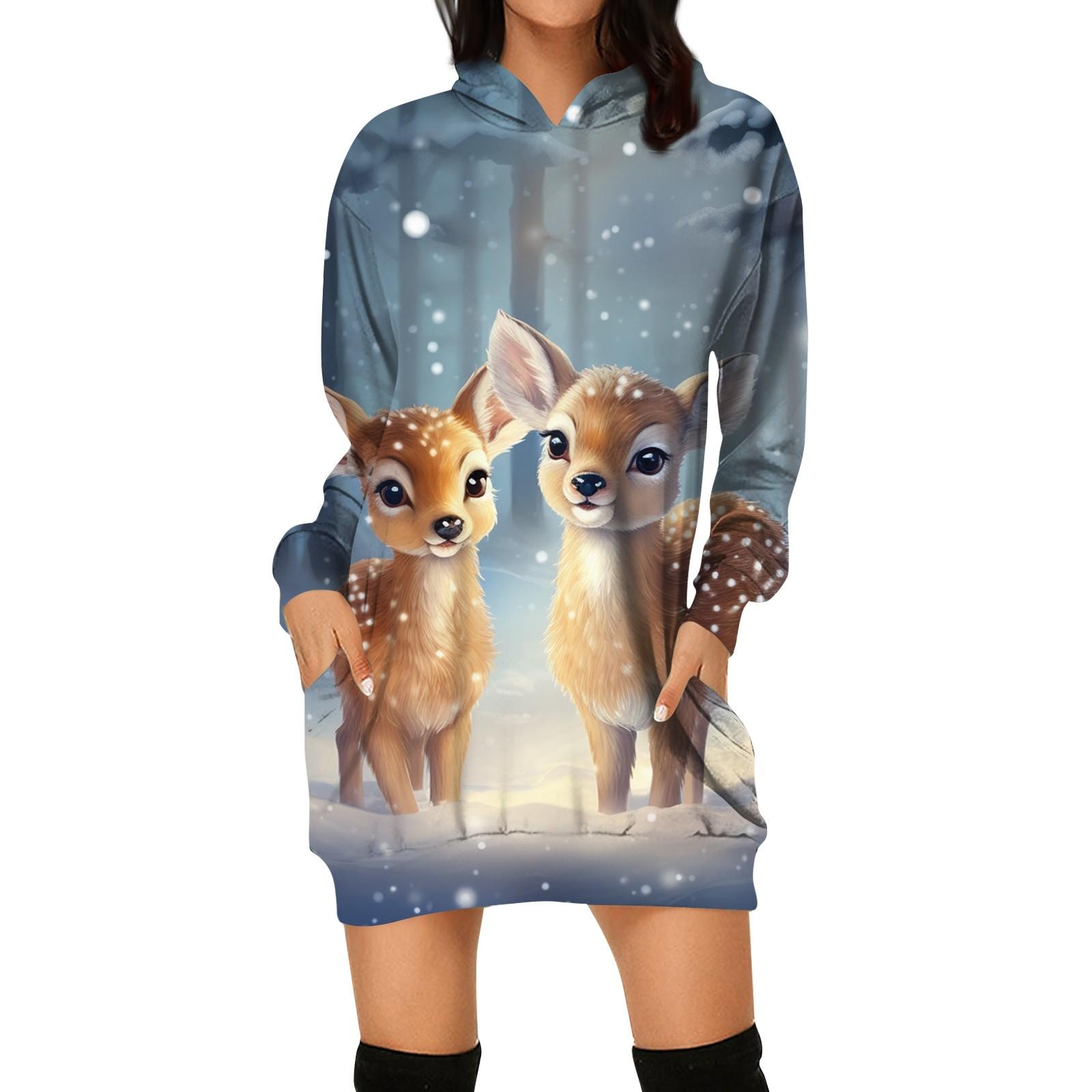 Женские зимние платья Модные женские рождественские принты Письменный принт Карманы с капюшоном Платье-толстовка L