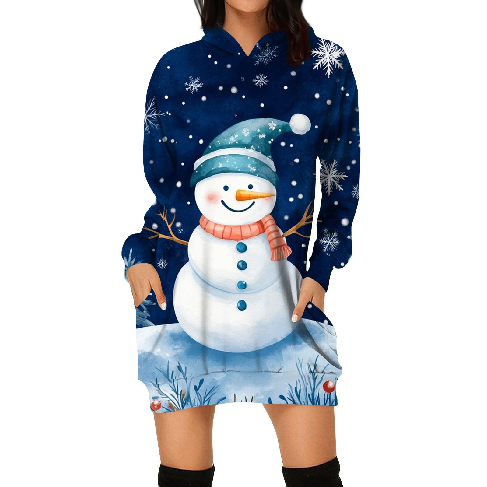 Женские зимние платья Модные женские рождественские принты Письменный принт Карманы с капюшоном Платье-толстовка L