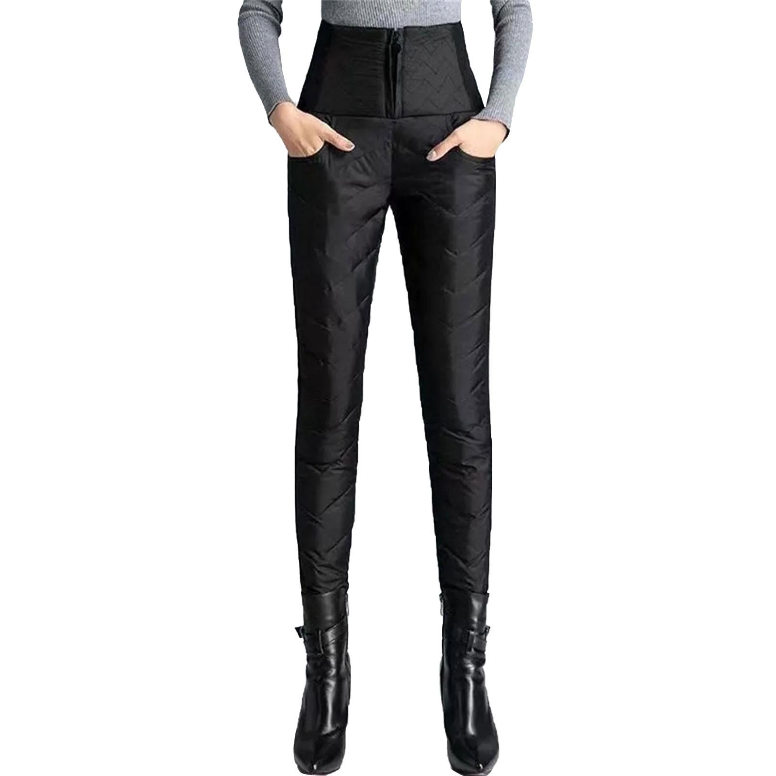 Женские зимние плюшевые ветрозащитные и теплые хлопковые брюки на гагачьем пуху с высокой талией на молнии XXL чёрный