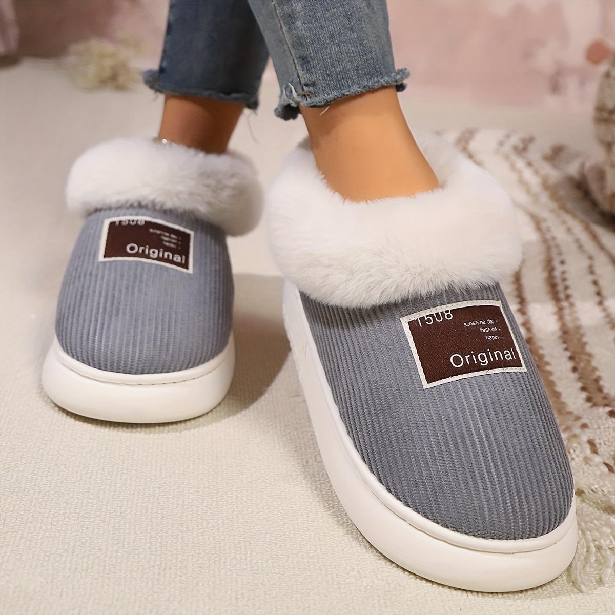 Женские зимние тапочки с плюшевой подкладкой из искусственного меха - Нескользящая подошва из ЭВА, Домашняя обувь для помещений/улицы, Теплые уютные слипоны для холодных полов, Обувь для дома 40-41 серый