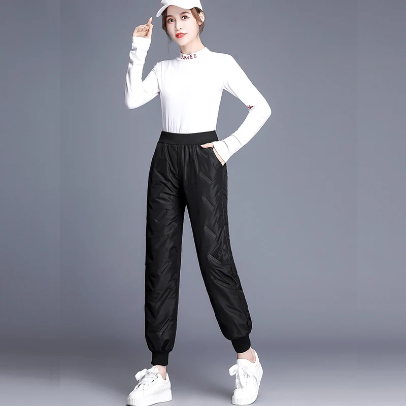 Женские зимние теплые пуховые хлопковые брюки, ветрозащитные Теплые повседневные Стеганые Брюки с эластичной резинкой на талии, спортивные штаны