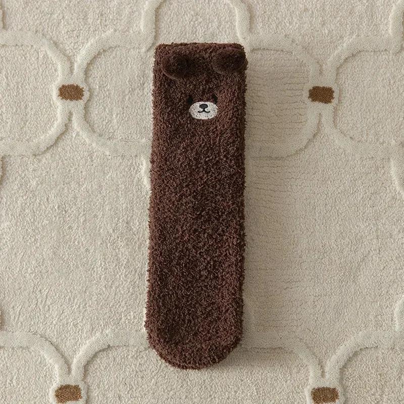 Женские зимние теплые пушистые носки, домашние напольные носки для сна, кавайные 3D медведи, толстые флисовые нечеткие носки с милыми животными, модные японские модные корейские носки One Size