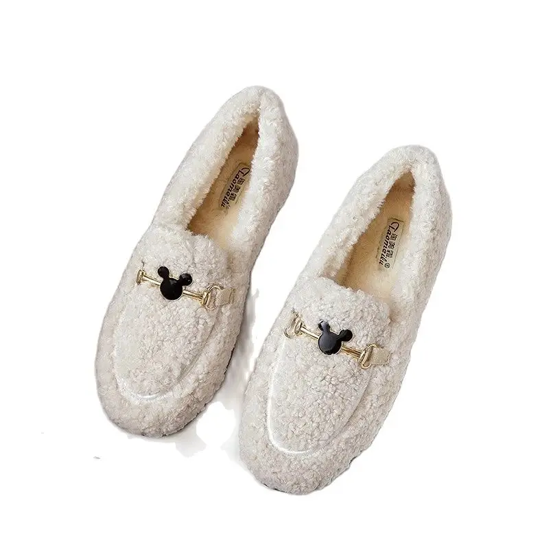Женские зимние уличные теплые ботинки Lefu на плоской подошве, обувь из овечьей шерсти с металлическим украшением, большой размер 41-43