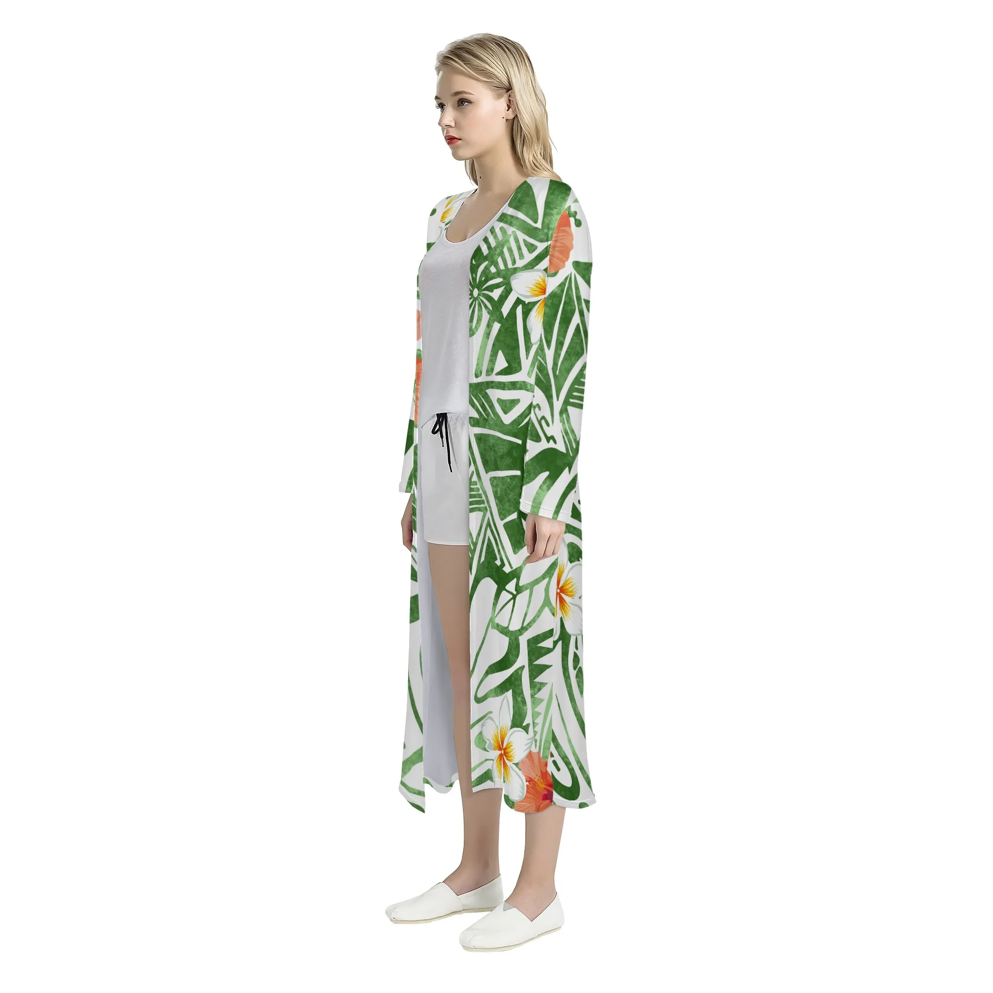 Женские кардиганы, повседневные полинезийские Гавайские кардиганы с индивидуальным принтом, повседневные открытые кардиганы с длинным ру...