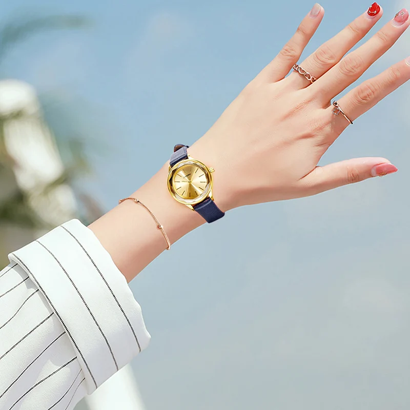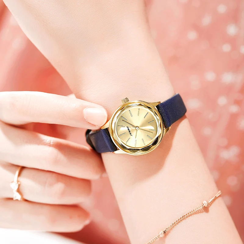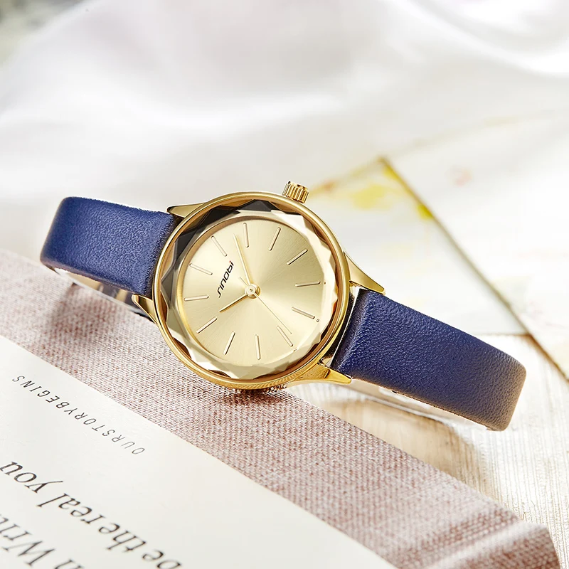 Женские кварцевые наручные часы Sinobi, простые золотистые наручные часы с синим ремешком, подарок для женщин, 2020