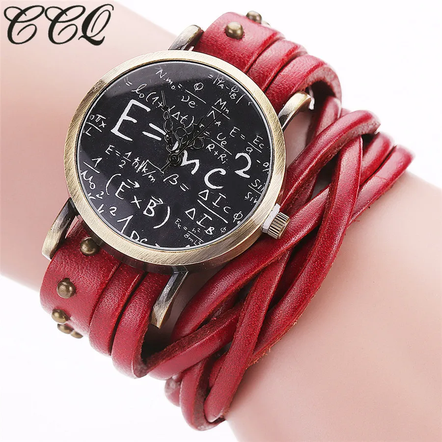 Женские кварцевые часы с ремешком из натуральной воловьей кожи, с математическим циферблатом