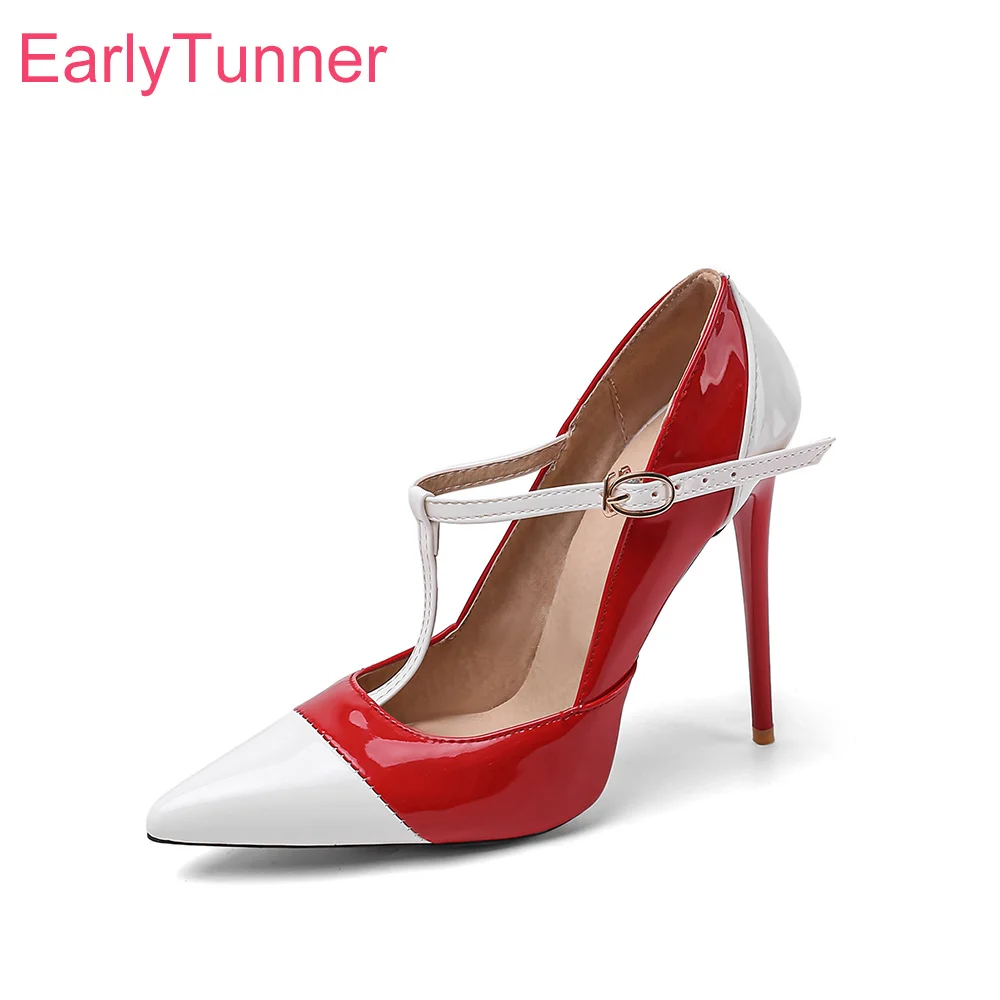 Женские классические туфли-лодочки, красные, белые туфли на очень тонком высоком каблуке, модель EM887 большого размера 10 43 47