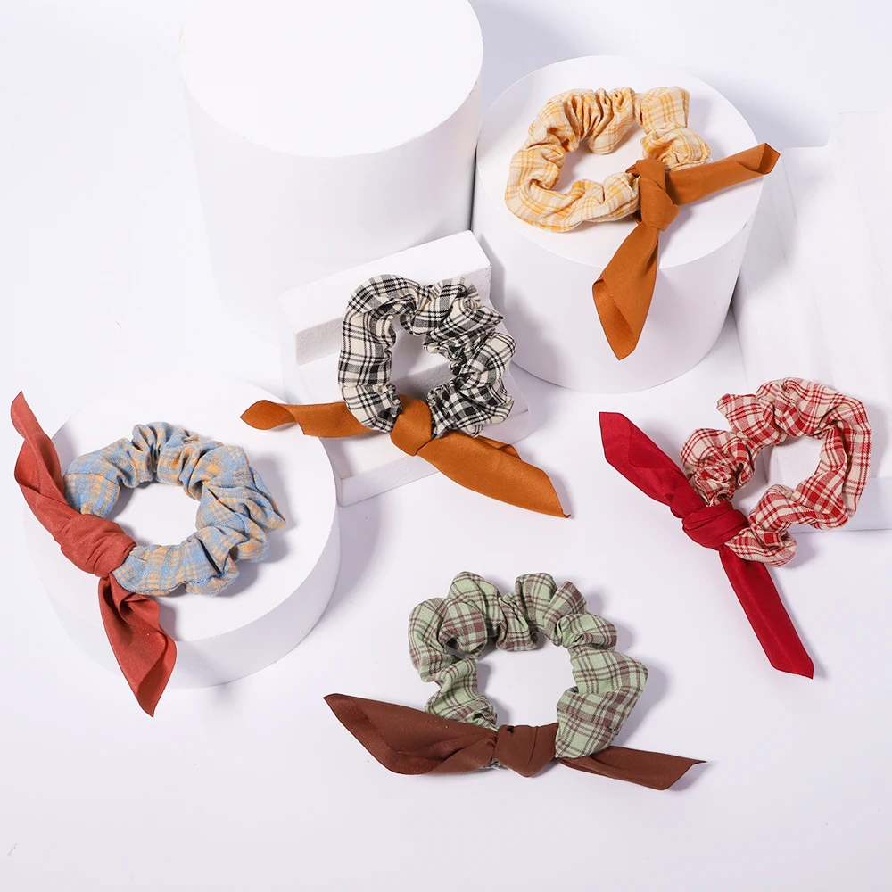 Женские клетчатые резинки для волос с кроличьими ушками, 3,2 дюйма, эластичные резинки для волос в стиле ретро для девочек, резинки для волос ...