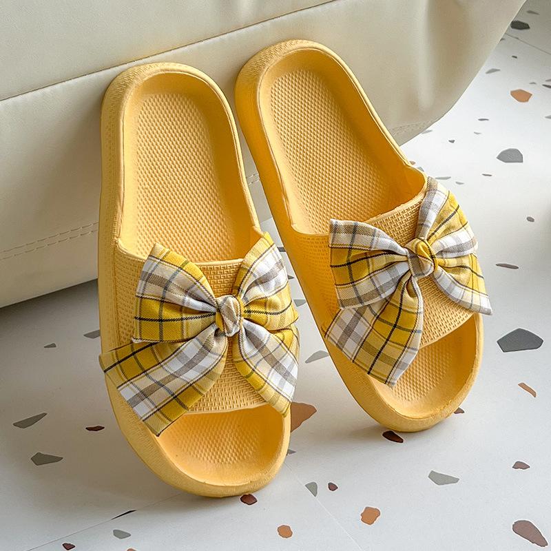 Женские клетчатые тапочки-бантики Домашняя обувь для ванной комнаты Ультралегкие сандалии из ЭВА Комфортные лоферы Женские нескользящие шлепанцы Платформа Вьетнамки 6.5 жёлтый